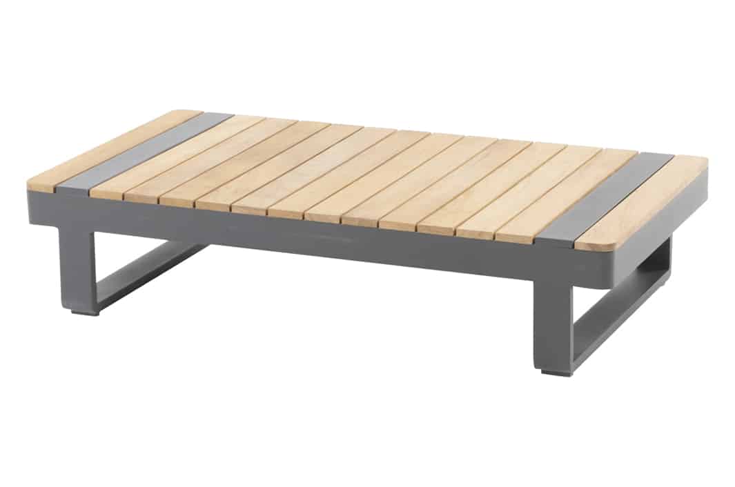 De Amari salontafel is vervaardigd van gepoedercoat aluminium en dus heerlijk onderhoudsarm. Het tafelblad is gemaakt van duurzaam teakhout. De warme houtkleur contrasteert fantastisch met het antraciet en zo ontstaat er een zeer stijlvolle loungeset op uw terras.