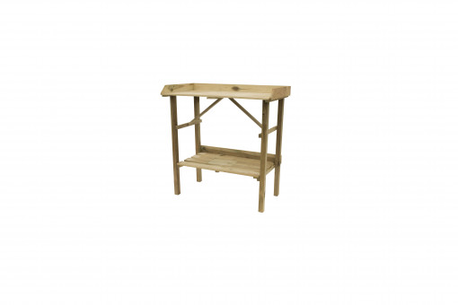 Het tuinwerkbankje is gemaakt van geïmpregneerd grenen hout. De afmetingen zijn 95 x 90 x 45 cm. Het bankje wordt geleverd met voorgemonteerde onderdelen.