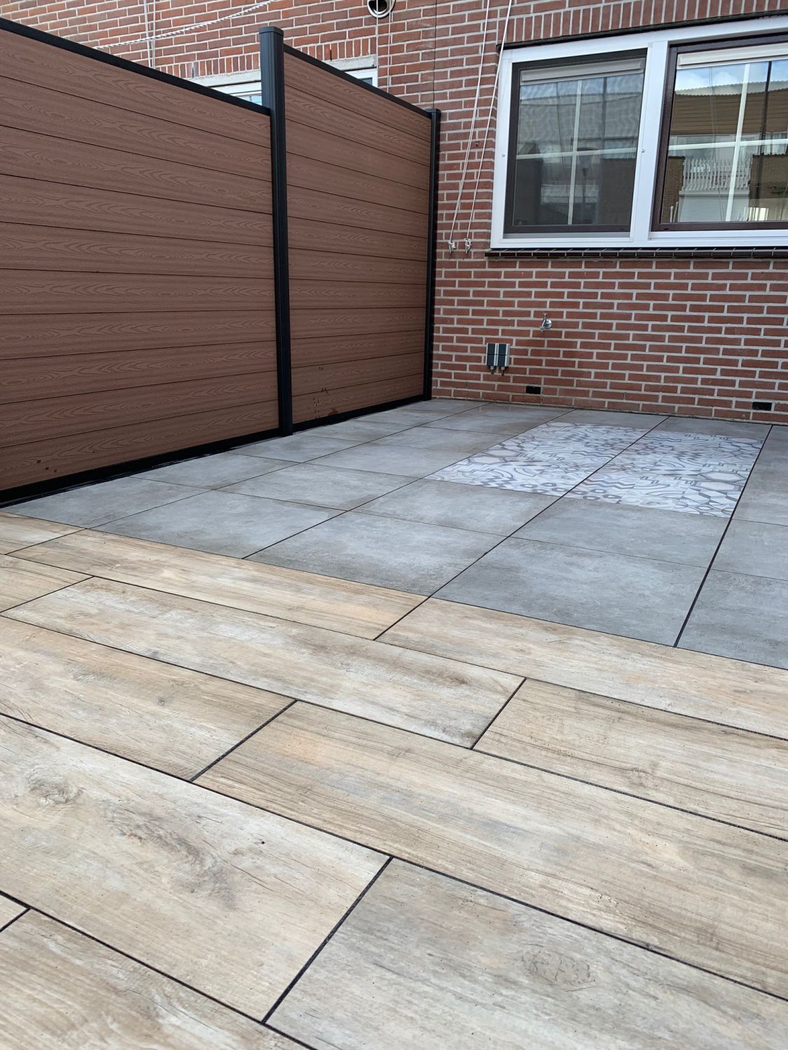 | Afwerking | Planken composiet met houtnerf |