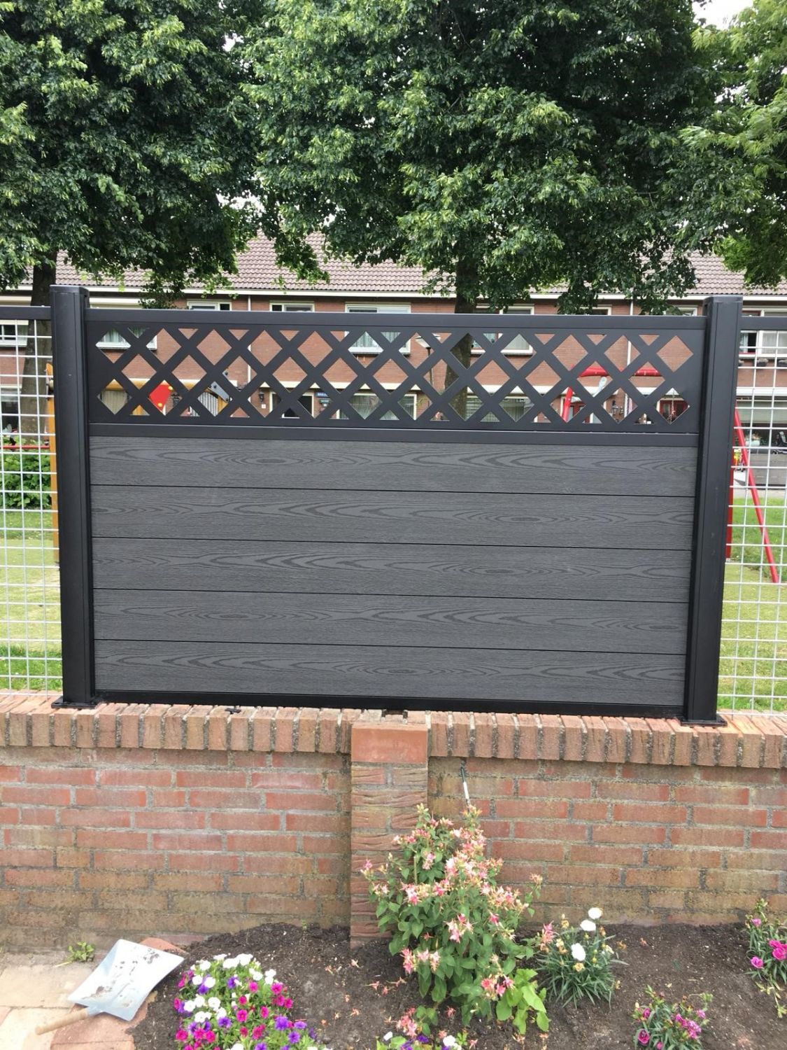 Unique Composiet Tuinscherm Trellis Diagonaal Antraciet 170x187 cm