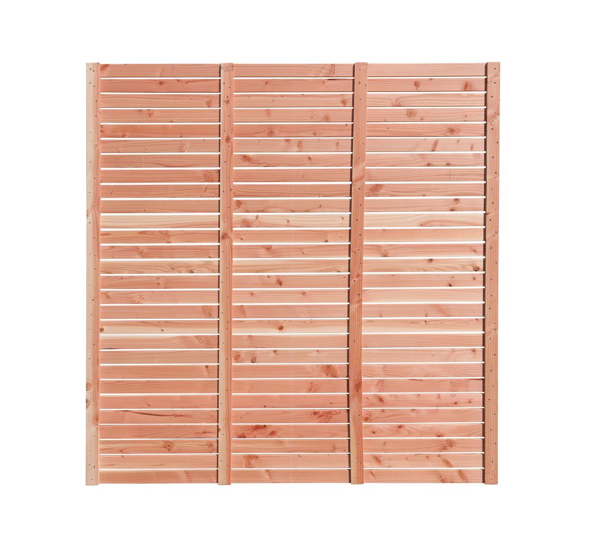 Het douglas plankenscherm is een enkelzijdig scherm met een strak lattenconcept. De douglas latten zijn 1,5x5,7 cm. Het scherm is horizontaal en verticaal toepasbaar.