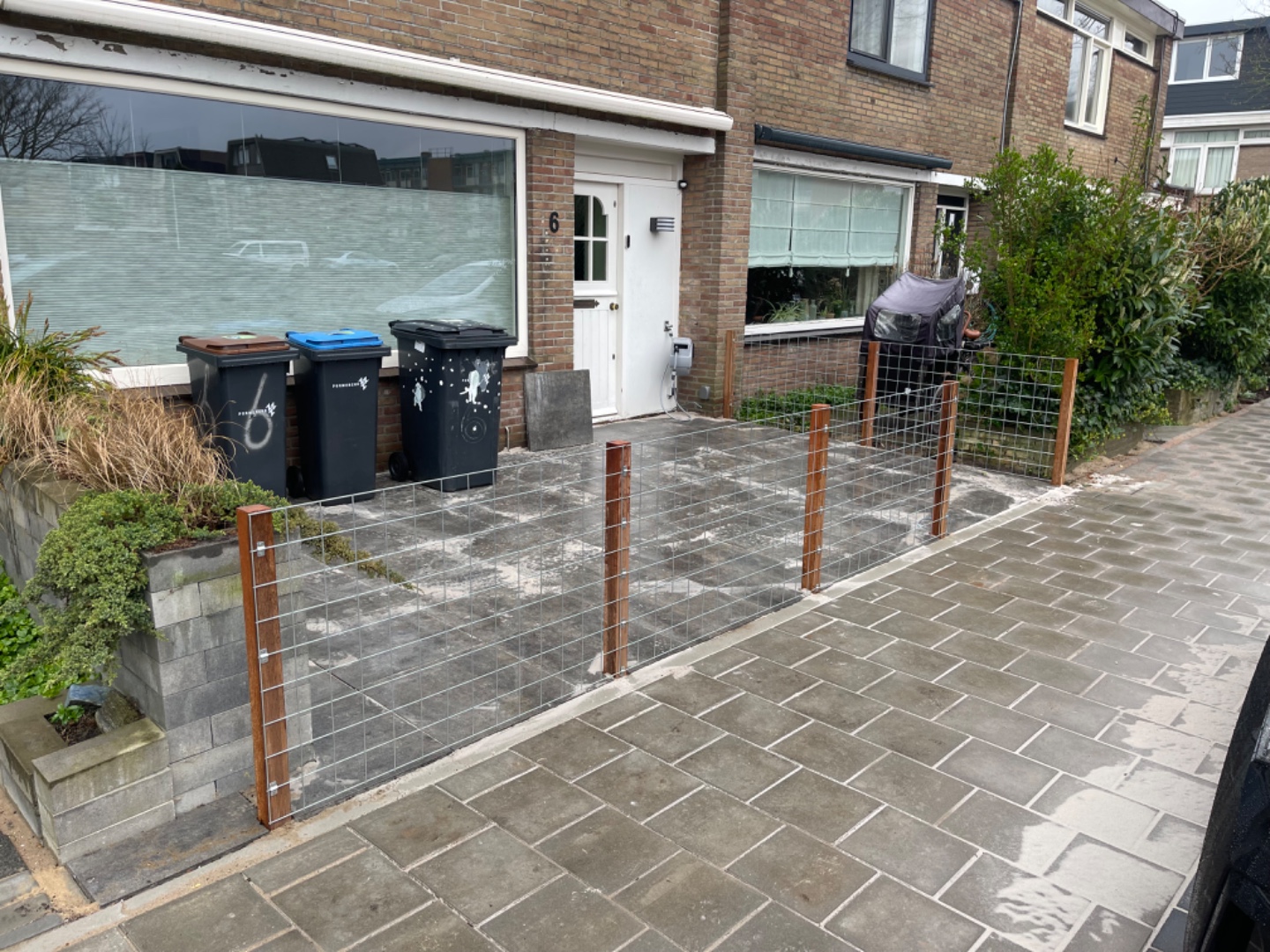 Draadmatten zijn eenvoudig te bevestigen met draadpaneelklemmen. Bevestig deze gaaspanelen bij voorkeur aan hardhouten palen. Je kunt hierbij kiezen uit ruwe, ongeschaafde hardhouten palen en glad geschaafde hardhouten palen. Gebruik 6 klemmen per draadmat.