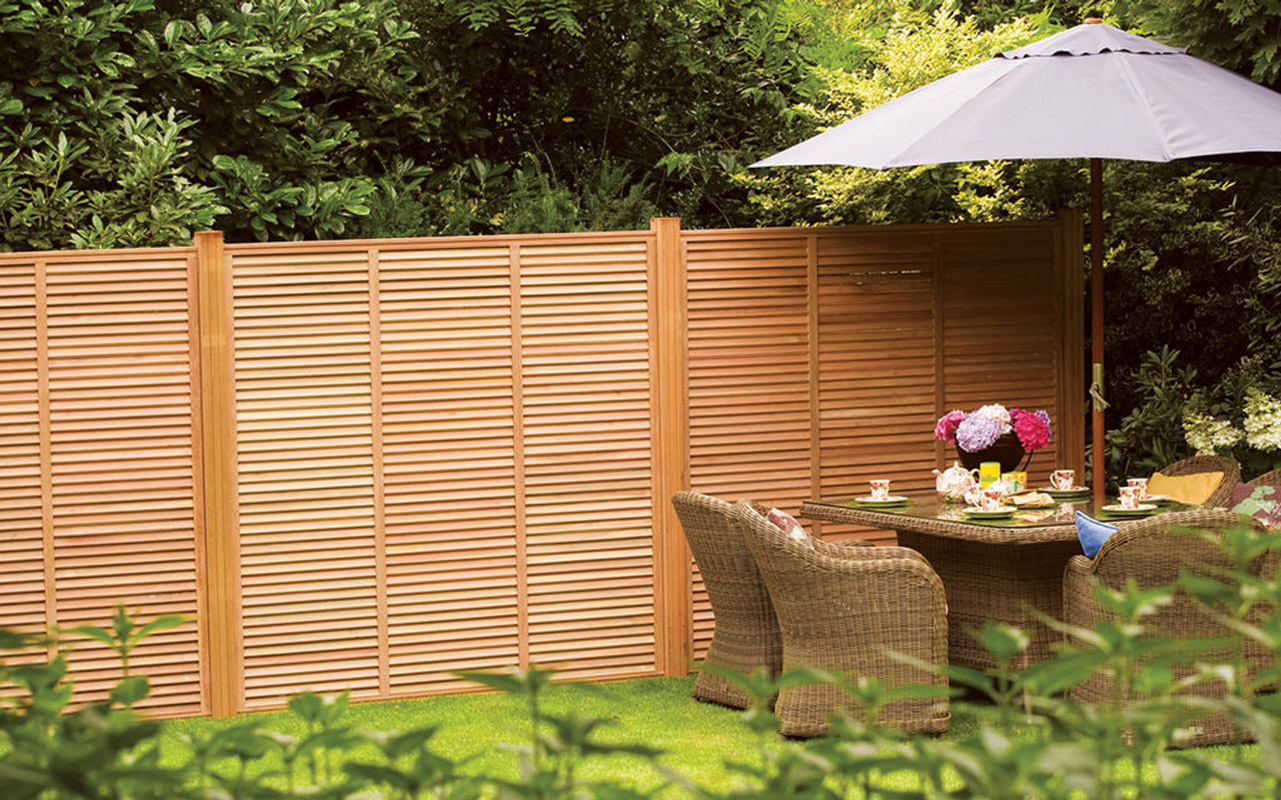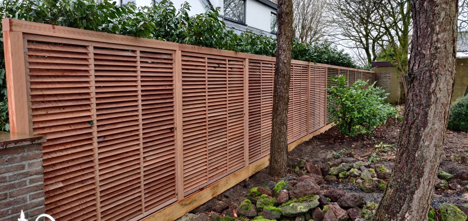 Deze trendy tuinschermen zijn gemaakt van lamellen van elegant hardhout en zijn een eyecatcher voor in de tuin. De lamellen spelen met licht en zorgen voor een unieke lichtinval in de tuin. Het lamellenscherm 'Louvre' heeft een stevige omlijsting van 3x4 cm en 2 staanders. Tussen de staanders zijn stevige lamellen ingefreesd. De lamellen zijn niet beweegbaar. Kies ook voor een Louvre schutting van Garden Enterprises en breng decoratie aan in uw tuin.