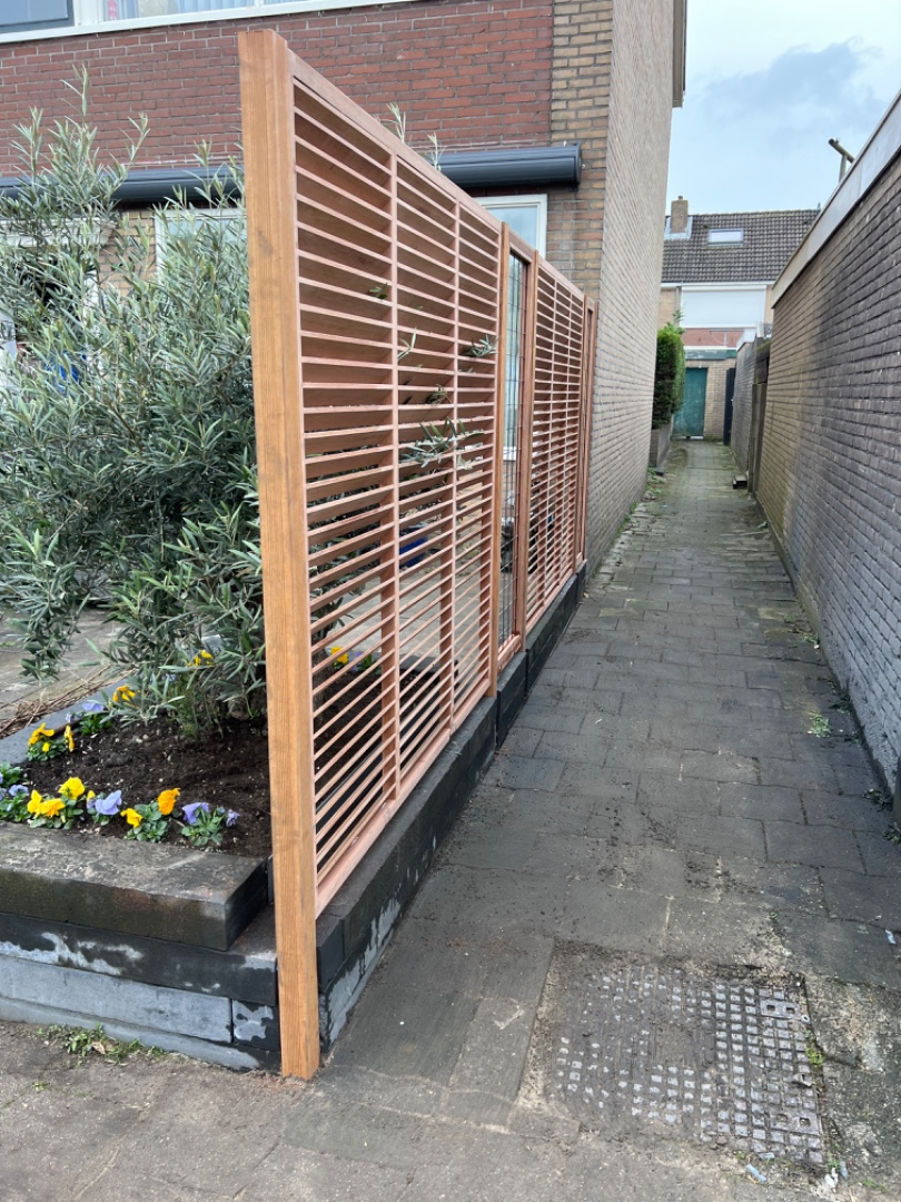 | Afwerking | Latten 10x42 mm geschaafd en RVS geschroefd |