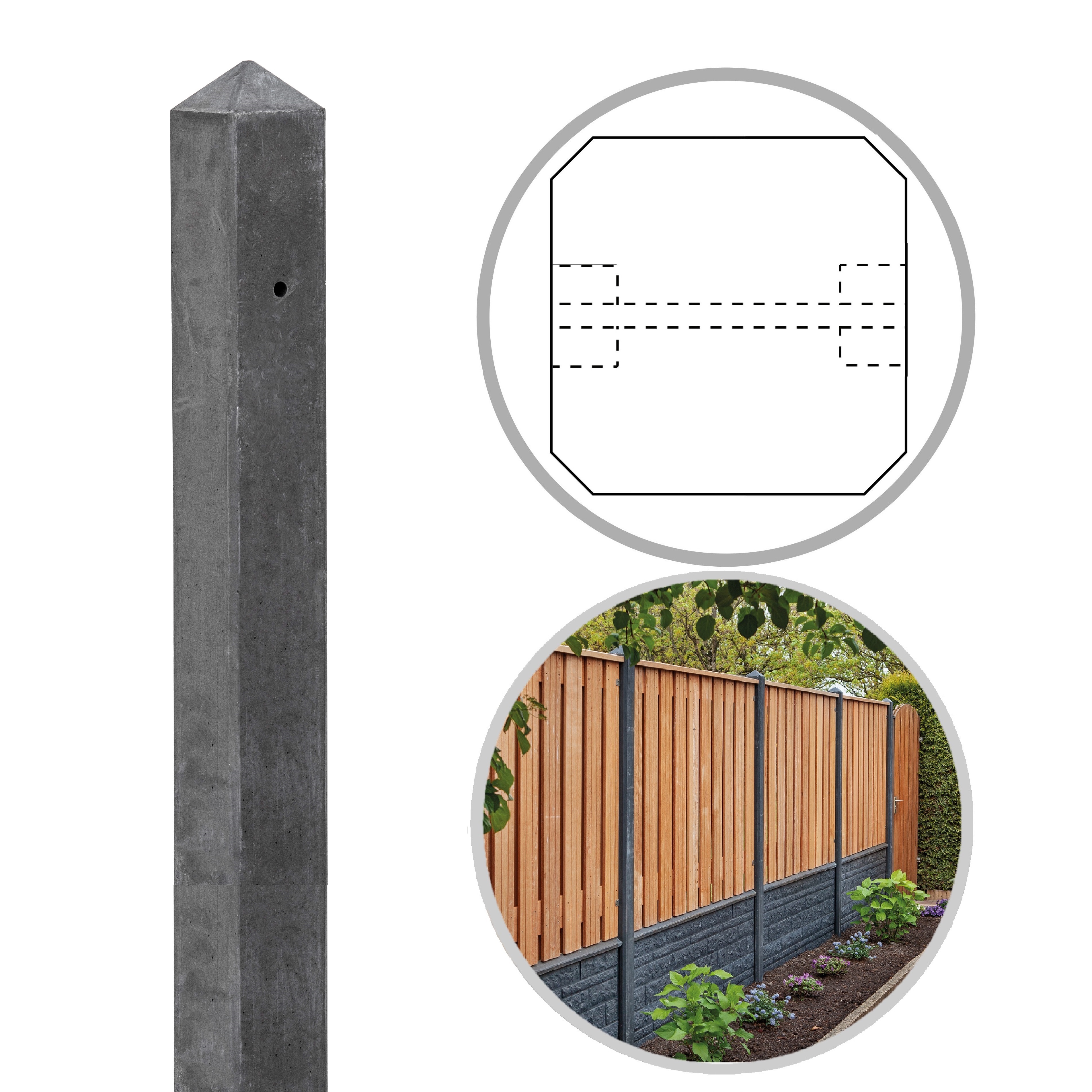 Beton RM Tussenpaal 10x10x280 cm, Antraciet tbv Scherm 150