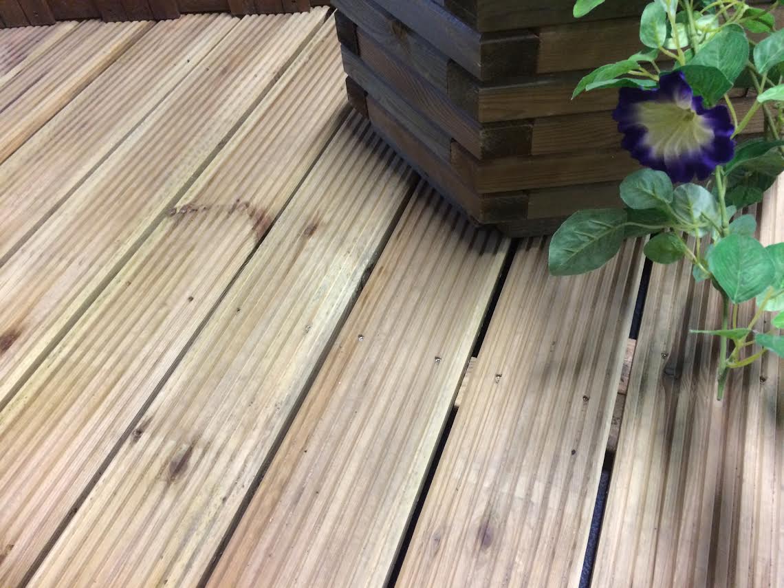 De grenen geimpregneerde planken zijn de meest voordelige oplossing om een mooi vlonderterras te maken. De planken zijn van twee kanten voorzien van een profiel (één zijde fijn en één zijde grof). Het is belangrijk om bij de planken genoeg onderruimte te hebben, zodat ze kunnen doorluchten. Zo blijven ze langer goed. De planken hebben een afmeting van 2,8 x 14,5 cm en zijn leverbaar in lengtes van 180, 300, en 400 cm.