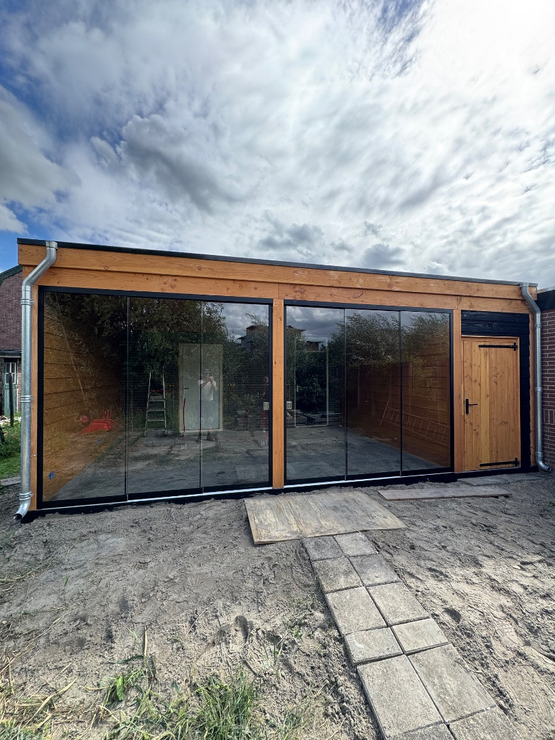 - Douglas budget overkapping 800x375 met berging 200 Triple rabat blank horizontale planken
