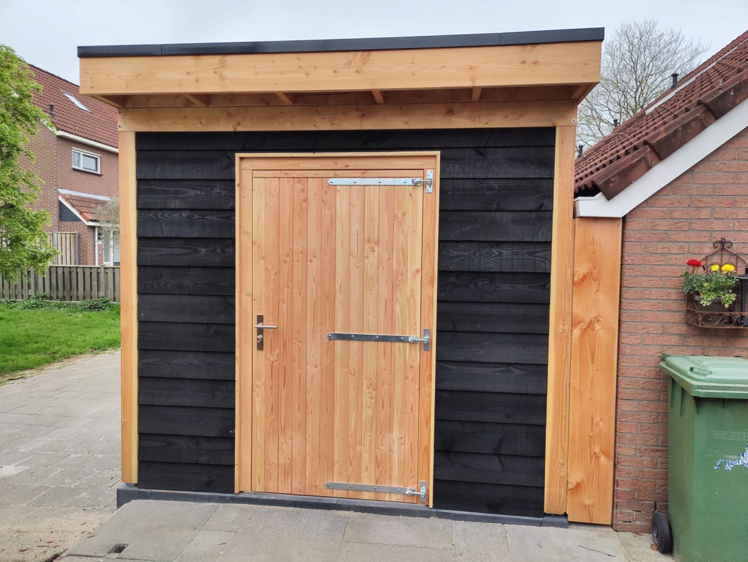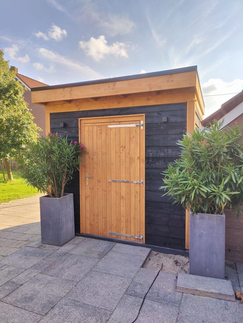 - Materiaal: Douglas hout met Zweeds rabatplanken (zwart).