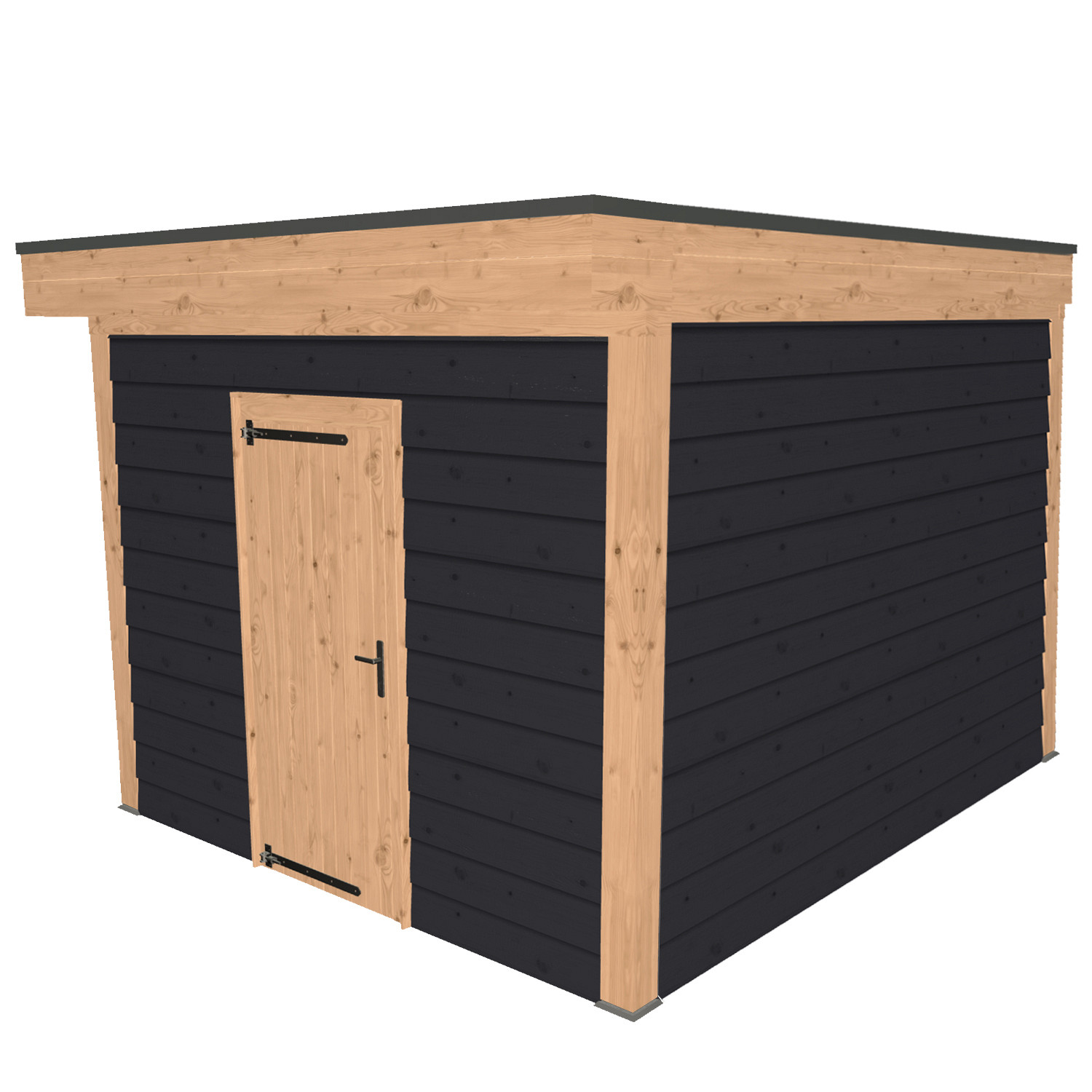 - Materiaal: Douglas hout met Zweeds rabatplanken (zwart).