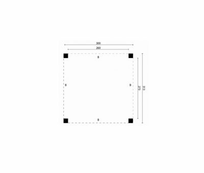 Voor een solide constructie monteer je de palen op betonpoeren. Rondom de poeren stort je (snel)beton. De getoonde maten zijn de funderingsmaten. Het dak overstek is standaard 30 cm diep en 5 cm in de breedte. Betonpoeren zijn in verschillende uitvoeringen verkrijgbaar. Wij raden de betonpoer de luxe 22x22x40 cm van harte aan.