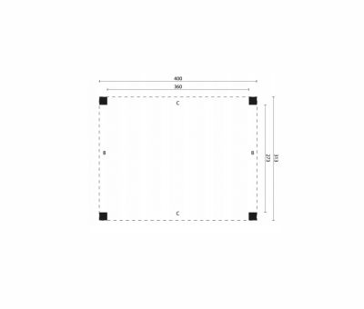 Voor een solide constructie monteer je de palen op betonpoeren. Rondom de poeren stort je (snel)beton. De getoonde maten zijn de funderingsmaten. Het dak overstek is standaard 30 cm diep en 5 cm in de breedte. Betonpoeren zijn in verschillende uitvoeringen verkrijgbaar. Wij raden de betonpoer de luxe 22x22x40 cm van harte aan.