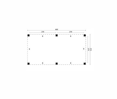 Voor een solide constructie monteer je de palen op betonpoeren. Rondom de poeren stort je (snel)beton. De getoonde maten zijn de funderingsmaten. Het dak overstek is standaard 30 cm diep en 5 cm in de breedte. Betonpoeren zijn in verschillende uitvoeringen verkrijgbaar. Wij raden de betonpoer de luxe 22x22x40 cm van harte aan.