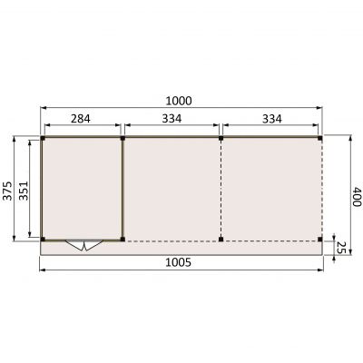JWOODS Buitenverblijf 1000x370cm incl. berging 300(b), Geschaafd met blokhutprofiel