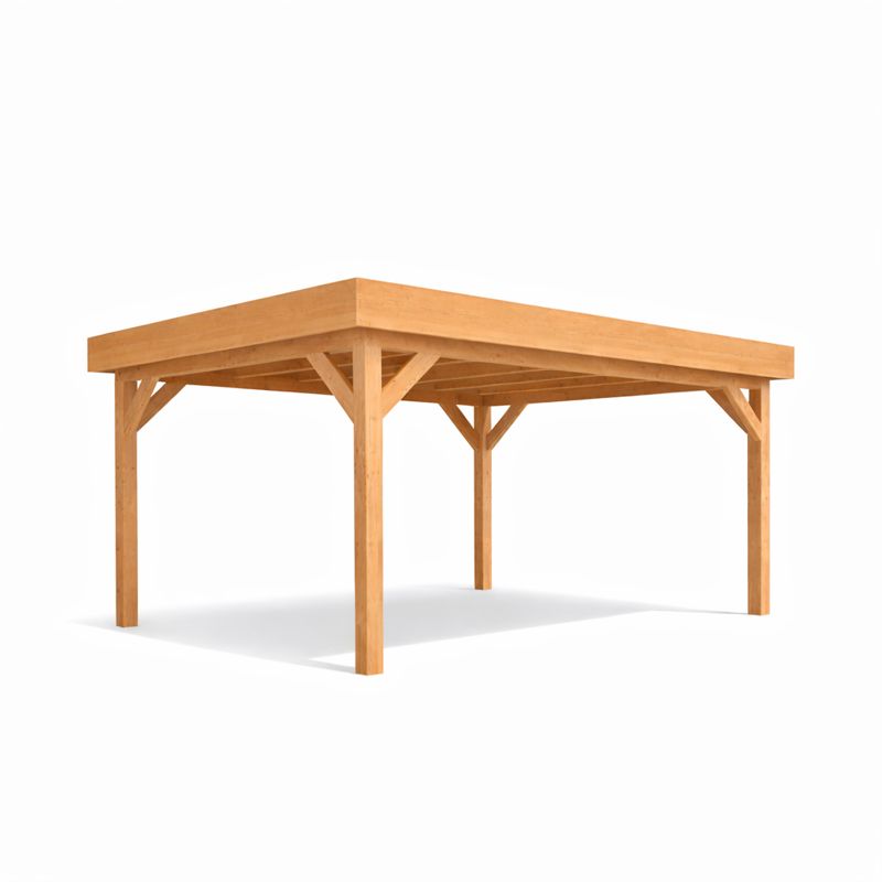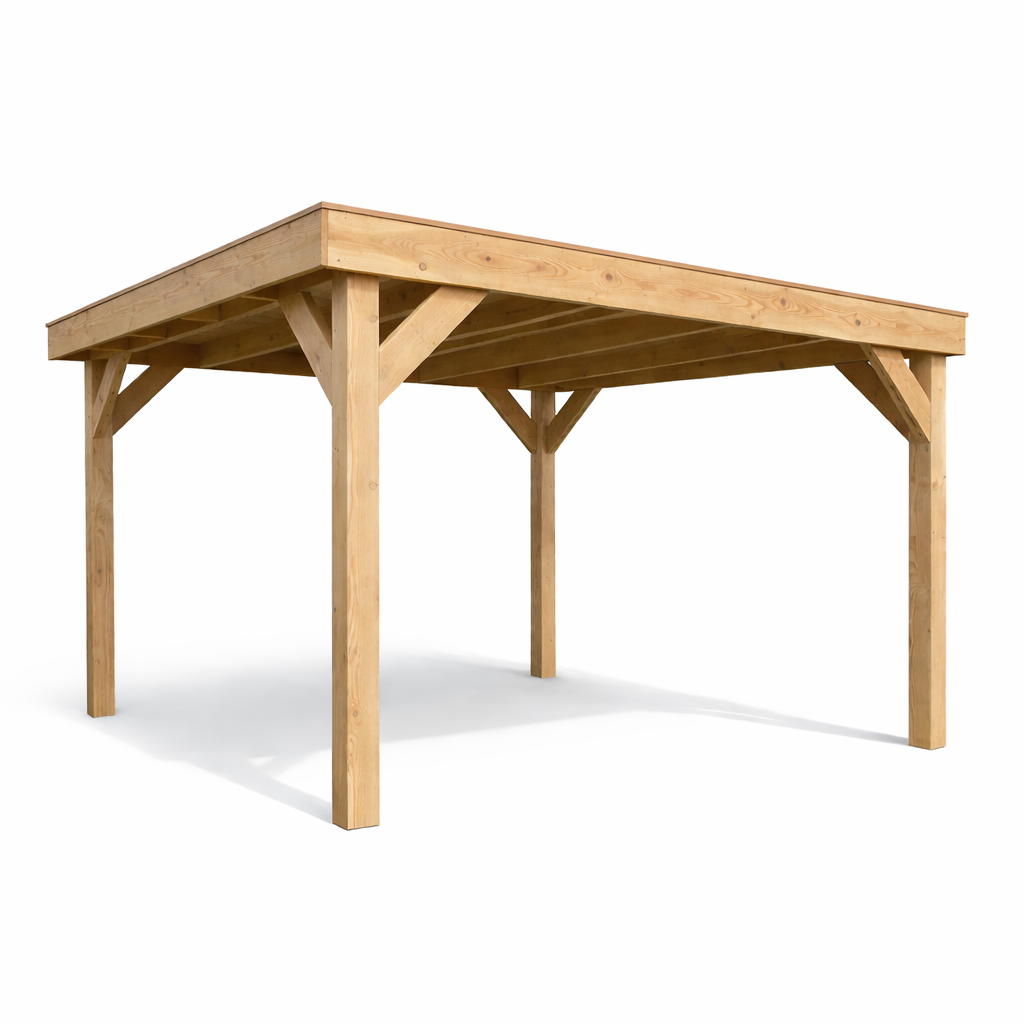 Het doe het zelf pakket wordt compleet geleverd inclusief dakbedekking, stadsuitloop, bevestigingsmaterialen etc. Wil je exact weten waar het pakket uit bestaat? Scroll dan naar beneden voor de complete materialenlijst. Optioneel kunnen de 12x12x300 cm palen tegen meerprijs worden vervangen voor 15x15x300 cm (bij een fijnbezaagd model) of 14x14x300 cm (bij een geschaafd model).