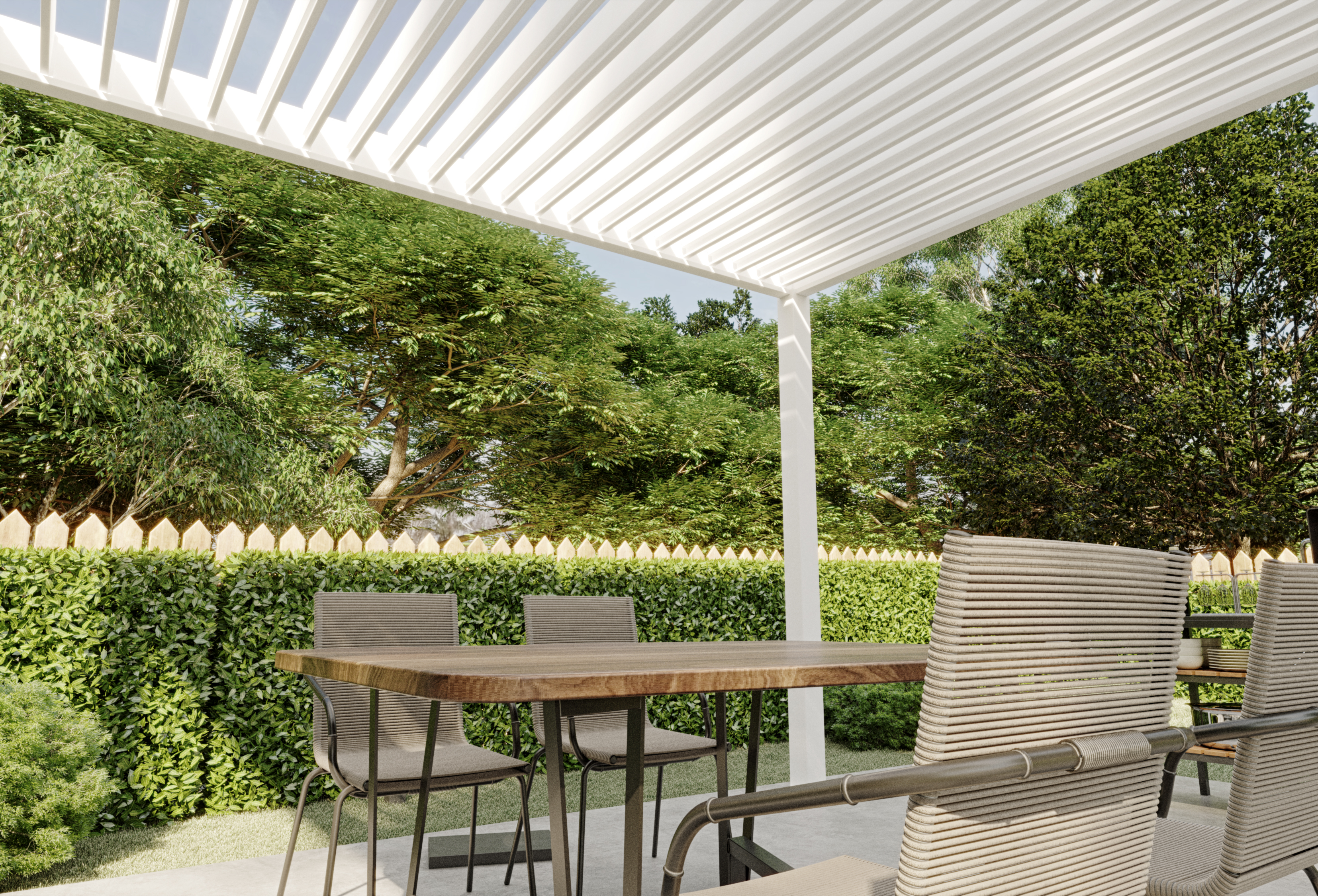 Je Orion Deluxe overkapping uitbreiden met accessoires? Dat kan! Met het Pull Down Zijscherm of het Louvre Shutter paneel zit je heerlijk in de schaduw en beschut tegen de wind. Daarnaast zorgen deze accessoires ook voor meer privacy. Door het unieke ontwerp bevestig je het zijscherm en het paneel volledig geïntegreerd in jouw pergola.