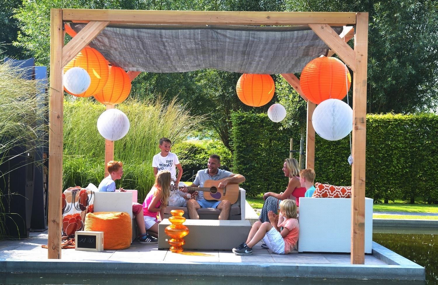 Een pergola van JWOODS hout blinkt uit in sfeer, veelzijdigheid en gemak. De pergola kan gemakkelijk worden uitgebreid met Solem zonwering of verlichting.