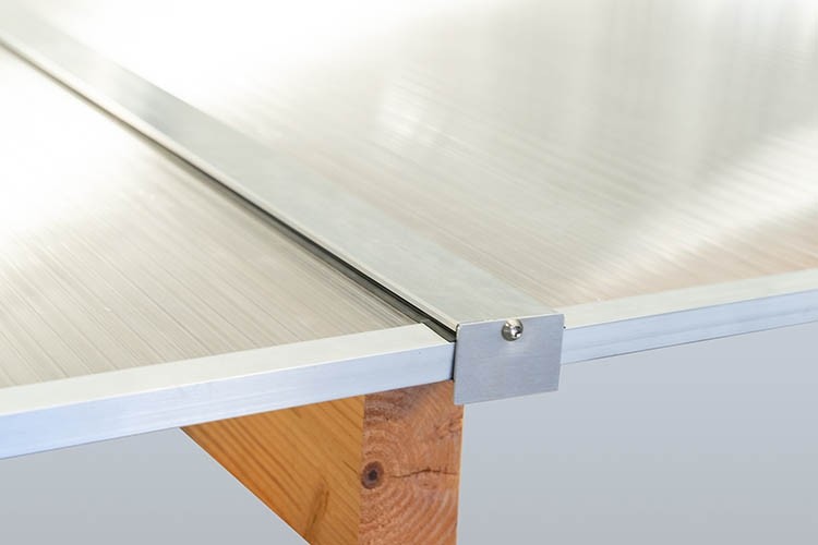 Het polycarbonaatsysteem LT30X is een daksysteem met een blank aluminium klik profielsysteem. Het onderprofiel wordt vastgeschroefd aan de constructie en het afdekprofiel klik wordt in het onderprofiel geklemd.