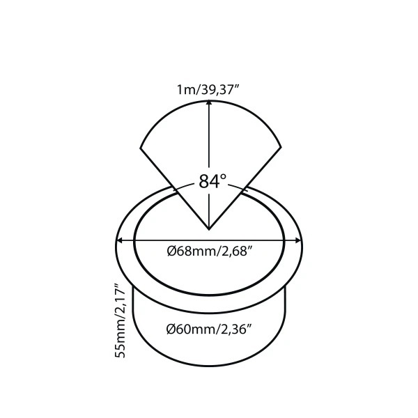Inbouwdiameter: 60 mm.