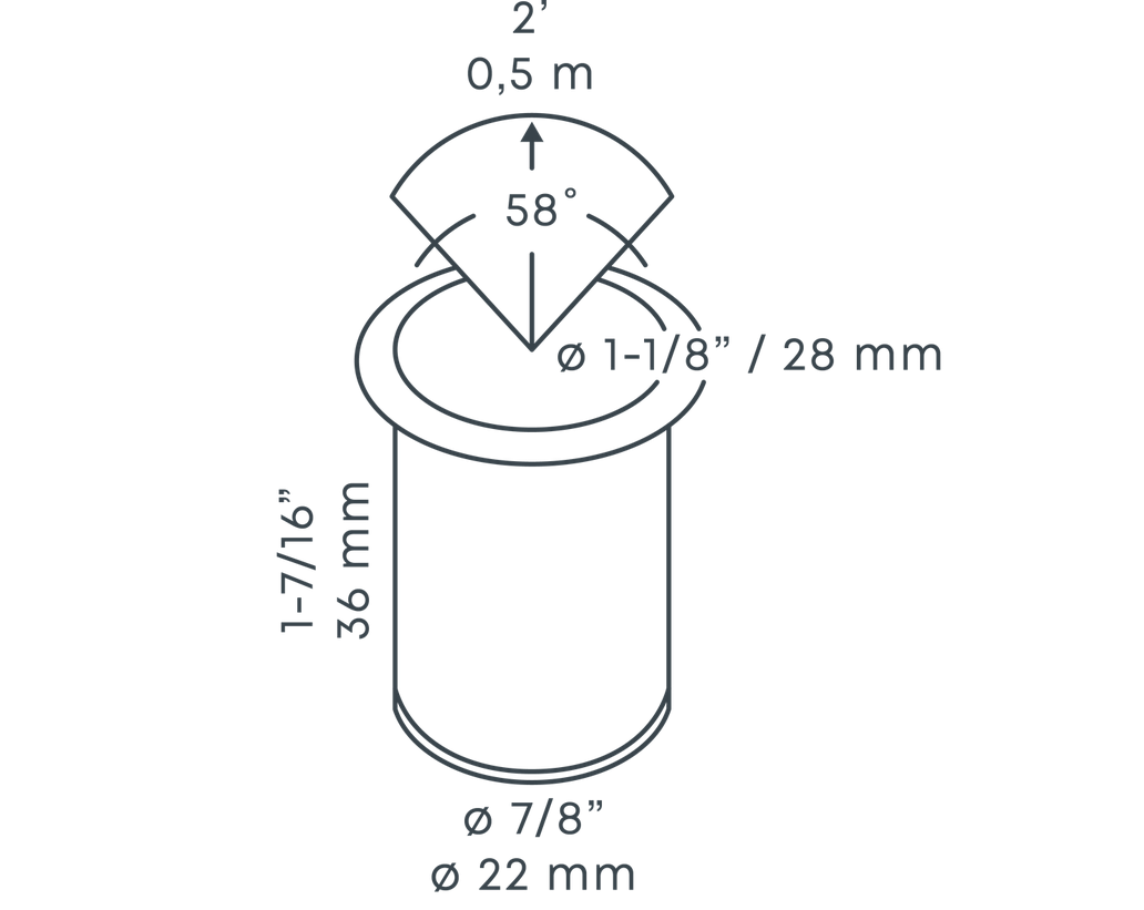 | Formaat | Ø22 mm (ring Ø28 mm), 32 mm hoogte, 55 mm inbouwdiepte |