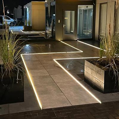 De Evo Hyde is een elegante lijnlamp die zorgt voor subtiele indirecte verlichting onder traptreden, muren of overstekken.