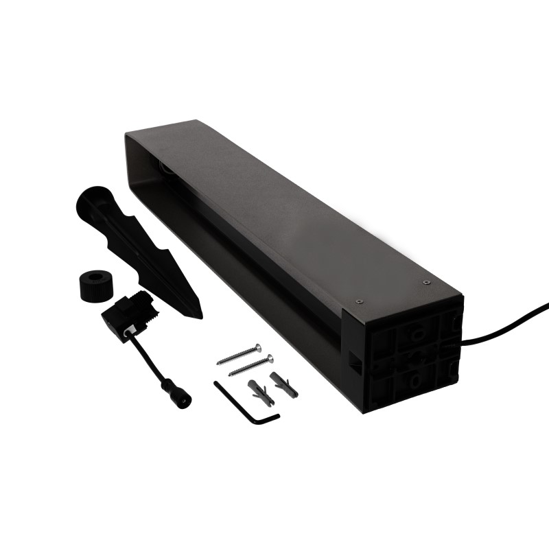 Bevestiging met schroeven op harde ondergrond of met een grondpen in zachte ondergrond (beide bijgeleverd). Let op! ACE HIGH schijnt aan 2 zijden naar beneden. De lichtbron in het armatuur is enigszins (10 graden) kantelbaar. Voor 90 graden kantelbaar strijklicht aan één zijde wordt de staande lamp ACE aangeraden.