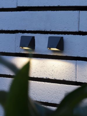 Kleine wandlamp met een subtiel diffuus lichtbeeld. Creëer in een handomdraai mooie lichteffecten op een lage wand, verhoogde border of traptreden.
